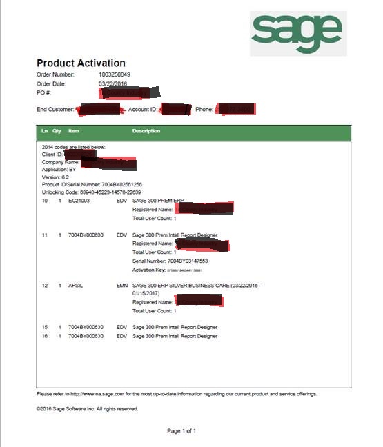 In this situation the Sage terminology is a little unclear. The License Manager says Activation Code but the paperwork says Activation Key