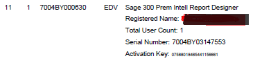 Answer on how to install an Intelligence Reporting Report Designer License in Sage 300: Product ID/Serial Number with the Unlocking Key/Code in the Activation Code/Key field