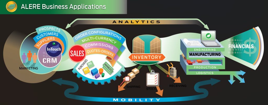 ALERE provides all the tools that a company may need to manage their business from one vendor. In addition, it includes many solutions that are commonly thought of as "add-ons", such as Document Management, Bar Coding, CRM, Analytics, Commissions, Multi-Currency, Mobility, and on and on. The point is that a company can grow with ALERE and never need to move to another package.