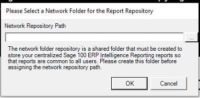 When you access Modules>Sage Intelligence>License Manager the system will ask you for the location of the Network Repository Path. This will be a network drive and is the location where you store your Sage Intelligence reports. See screenshot below. After that we have listed the steps to remove Sage Intelligence workstation if needed.